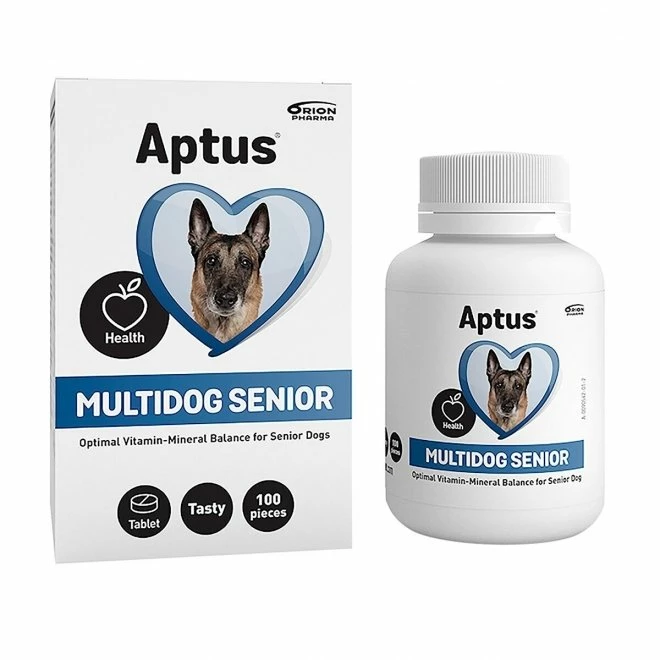Multidog Senior for langvarig bruk: 1 tablett / 10 kg / dag til fullvoksne hunder.