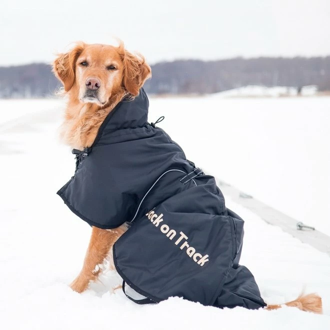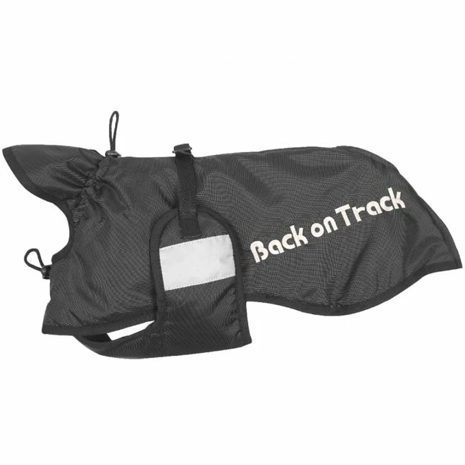 Back On Track Hundedekken Standard er tilgjengelig i mange forskjellige størrelser og kan enkelt justeres foran, rundt halsen og under magen. På baksiden er det en glidelås som kan brukes hvis hunden din har en høy hale. Dekkenet er utstyrt med reflekser på begge sidene – perfekt når du er ute og går i mørket.