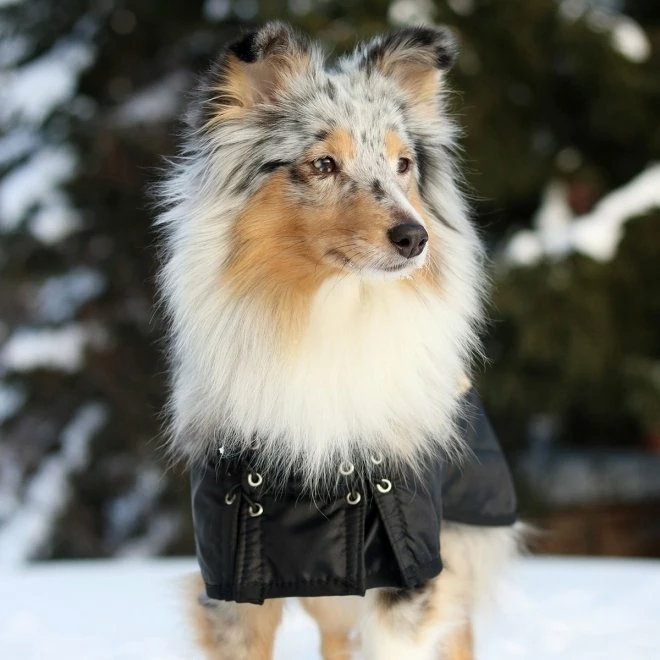 I størrelse 37 og oppover har dekkenet doble folder over skuldrene, slik at det passer for hunder med litt grovere kroppsbygning.