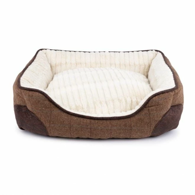 Denne myke hundesengen i fleecemateriale har litt ekstra høye kanter, som gjør at den passer utmerket til hunder som liker å ligge og hvile på siden. I sengen ligger det en myk pute som kan tas ut ved behov. Sengen kan vaskes i maskin og kommer i tre forskjellige størrelser.
