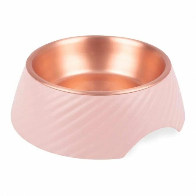 Denne hundeskålen er rosa med en kobberfarget, uttakbar innerskål – fint og veldig praktisk ved rengjøring!