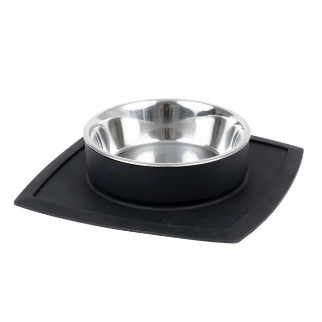 Har du problemer med at vann eller mat søles ut, eller at skålen flytter på seg når hunden eller katten spiser/drikker? Da er denne skålen noe for deg! Den har et praktisk underlag av silikon som står støtt på gulvet, og den rustfrie skålen sitter fast i underlaget – veldig smart!