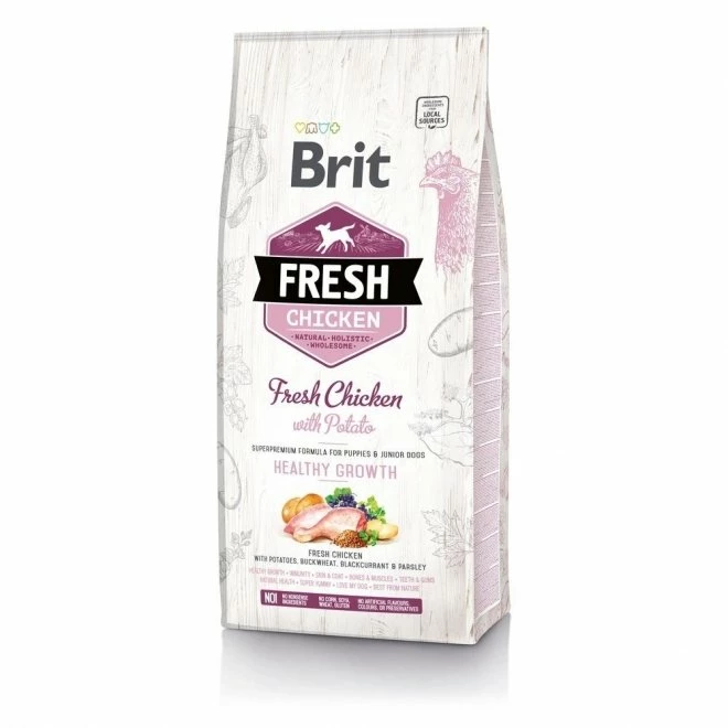 - Brit Fresh Chicken with Potato Puppy Healthy Growth er tilvirket av ferskt kjøtt og er svært velsmakende.