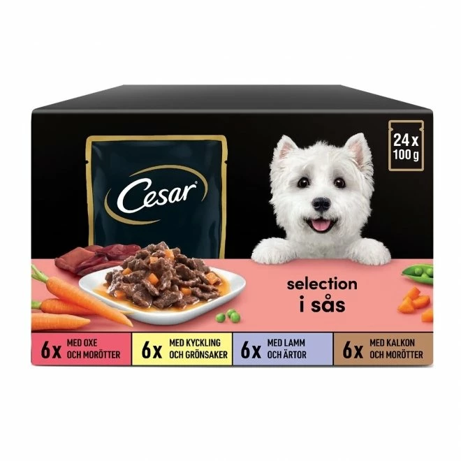 - Cesar Del Fresh Miks i Saus 24 x 100 g – våtfôr av høy kvalitet for hunder i alle størrelser og raser.