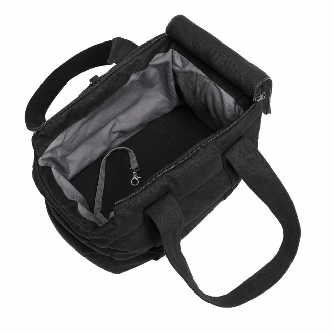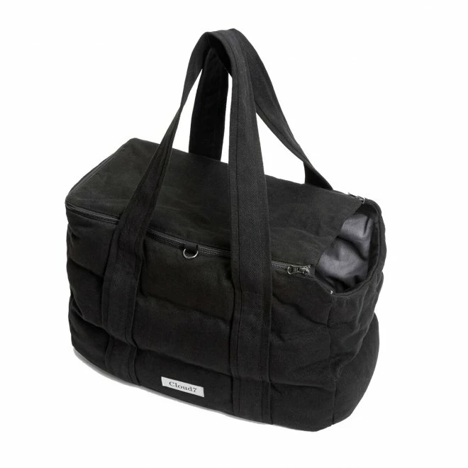 Svart hundeveske i elegant og minimalistisk design for små hunder. Hundevesken kan gjerne brukes av hundevalper eller eldre hunder som ikke bør gå for lange turer, og som trenger en velfortjent hvil i vesken. Voksne hunder av liten rase kan plasseres i vesken i store folkemengder, der risikoen for å bli tråkket på eller andre behov kan tilsi at hunden trenger veskens funksjon og trygghet.