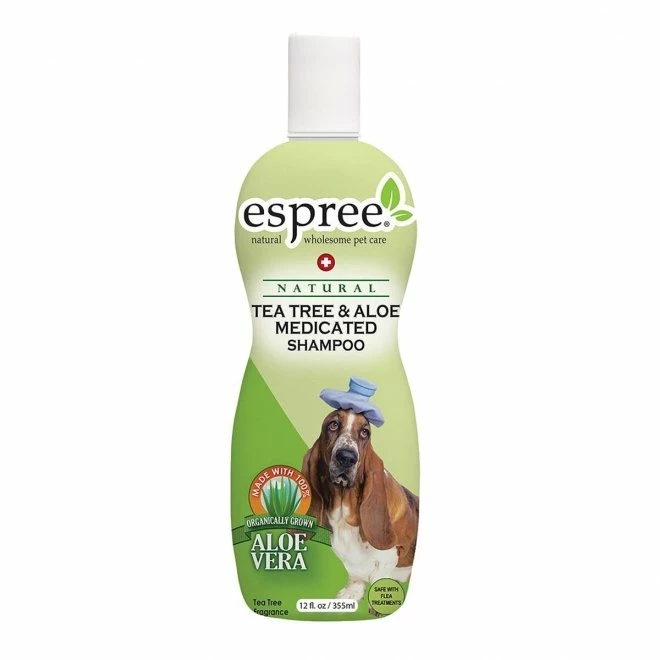 Tea treeolja er varsomt blandet med Aloe Vera, kokosolje, salisylsyre (framstilles av mjødurt), avokado-olje og sheasmør. Disse ingrediensen bidrar til en pleiende sjampo for eksem forårsaket av insektbitt, våteksem, flass og sopp, og etter etterlater en myk pels med vakker glans. Må IKKE brukes på katter!