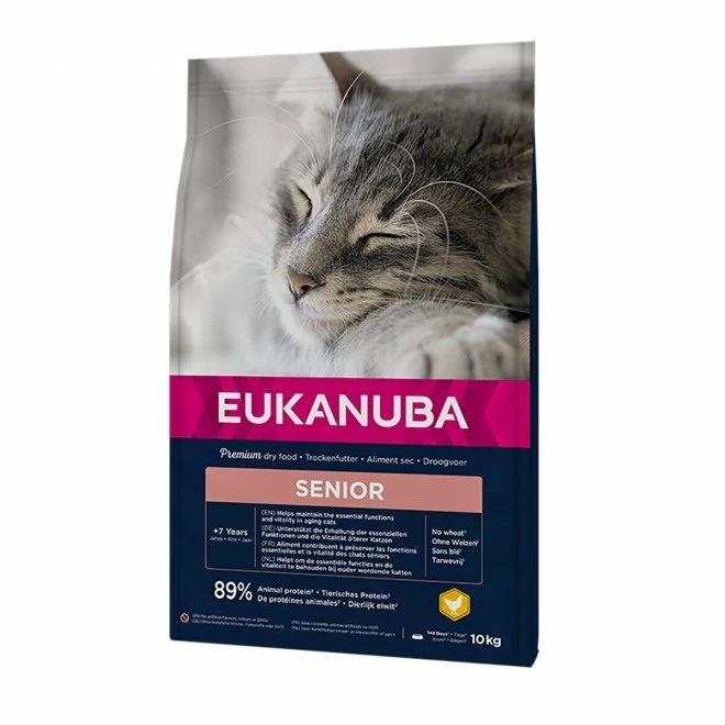 Eukanuba Cat Senior Chicken er et hvetefritt tørrfôr, spesielt tilpasset behovene til eldre katter. Det har en deilig smak av kylling og kalkun – smaker som de fleste katter setter pris på!