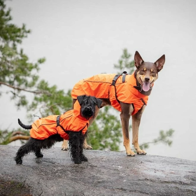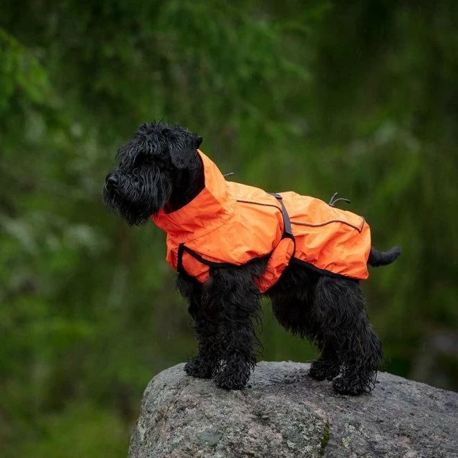 Feel Active Reflective Regnjakke er en vind- og vanntett regnjakke. Den kommer i en sterk og synlig oransjefarge som gjør hunden synlig dag og natt.