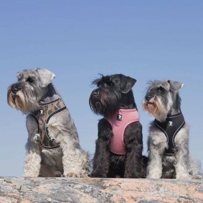Dette er en myk og behagelig sele med fint kamuflasjemønster, spesielt tilpasset mindre hunder. Det myke meshstoffet slipper gjennom luft så hunden ikke blir for varm, og følger enkelt hundens bevegelser så den kan røre seg fritt.
