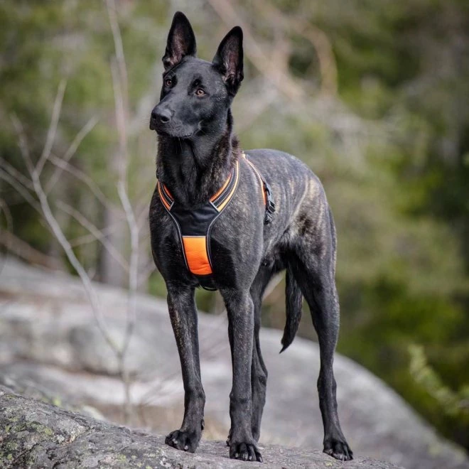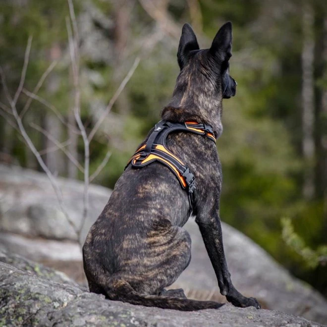 Med et håndtak på ryggen i tilfelle hunden trenger hjelp i vanskelig terreng, eller om du trenger ekstra kontroll over hunden din.