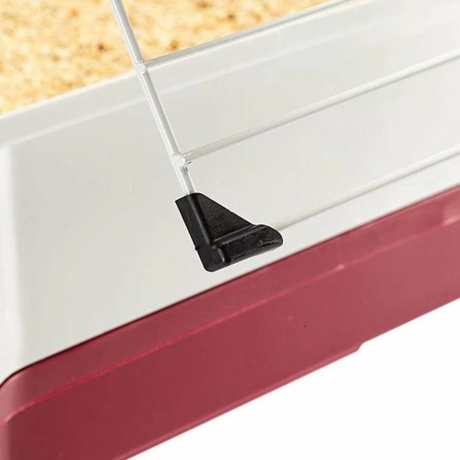 Ferplast Krolik 140 er laget av plast med hvitt gitter. Buret kommer komplett med et lite hus, høyhekk, matskål og vannflaske. Det fungerer også utmerket som marsvinbur!
