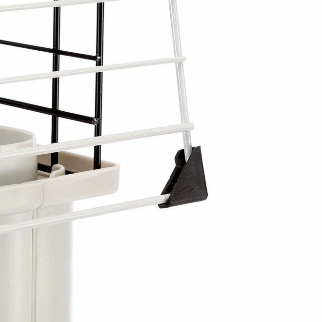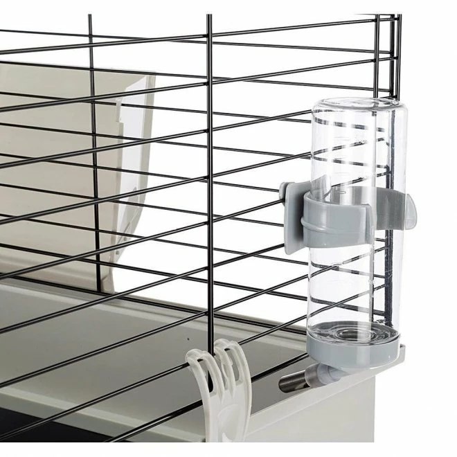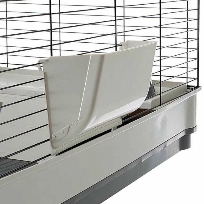 i standardmodell som er noe større enn Ferplast Krolik Large. Buret kommer med bunn av svært solid hardplast som er lett å holde rent. Den øverste delen av buret er laget av hvitt gitter for å gi kaninen god ventilasjon og god oversikt over omgivelsene sine. Når du åpner dette buret for å ta ut kaninen din, hekter du enkelt av den ene siden av gittertaket for å løfte den ut. Du kan også
