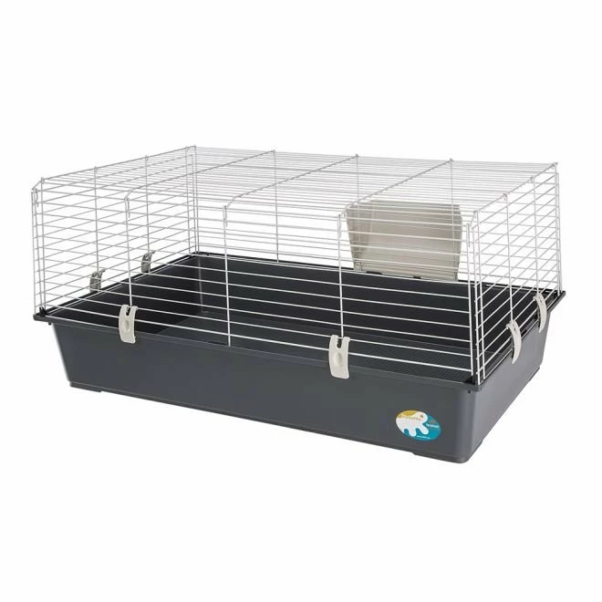 Dette romslige buret består av en plastbunn og et gitter. Buret åpnes foran og kommer med en høyhekk av slitesterk plast. Høyhekken plasseres på utsiden av buret for å skape mer plass inne i buret.