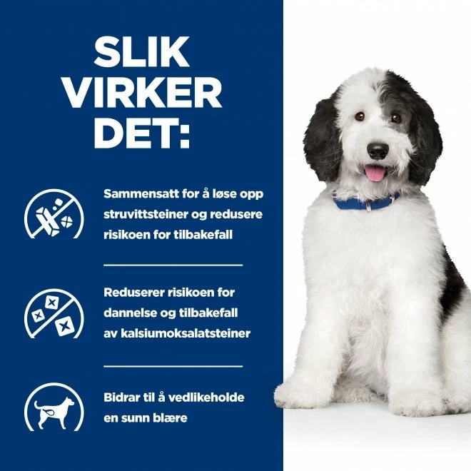 Prescription Diet Canine C/D Multicare Chicken nøytraliserer frie radikaler, fordi fôret inneholder høye nivåer av antioksidanter. Fôret er for langsiktig håndtering etter oppløsning eller fjerning av struvittstener