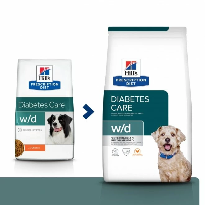Dette veterinærfôret har lavt fett- og kaloriinnhold og bidrar til å opprettholde idealvekten. Videre har Hill’s Prescription Diet Canine w/d høyt kostfiberinnhold, som metter og motvirker tigging. Fôret er også beriket med et høyt nivå av L-karnitin, som bidrar til fettforbrenning og bevarer musklene ved vektreduksjon.