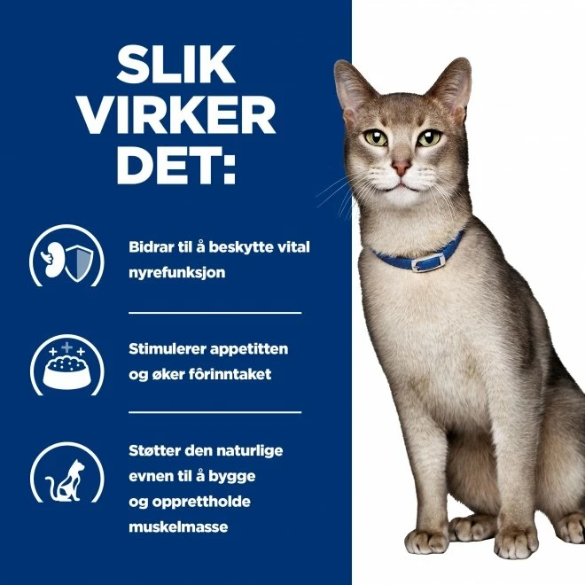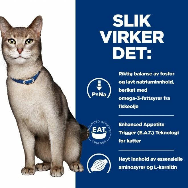 Veterinærfôret er spesialutviklet for å passe katter med kronisk nyresvikt. Fôret styrker både nyrer og hjerte, smaker deilig tunfisk.