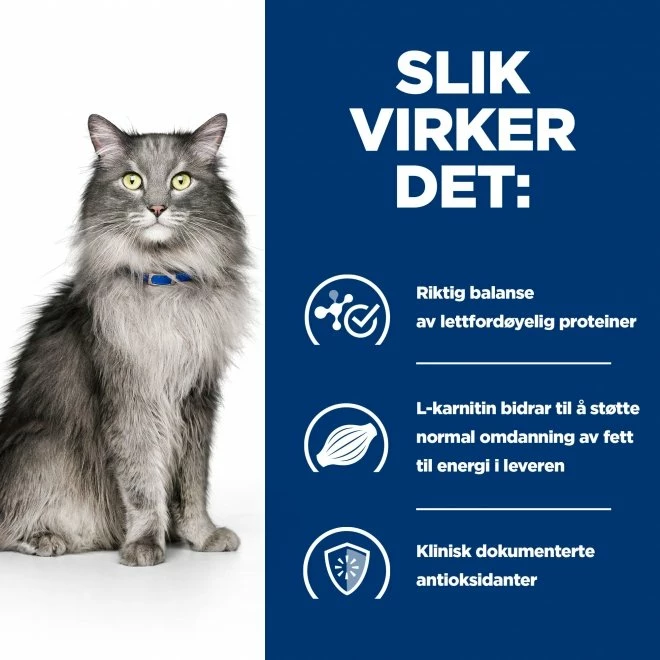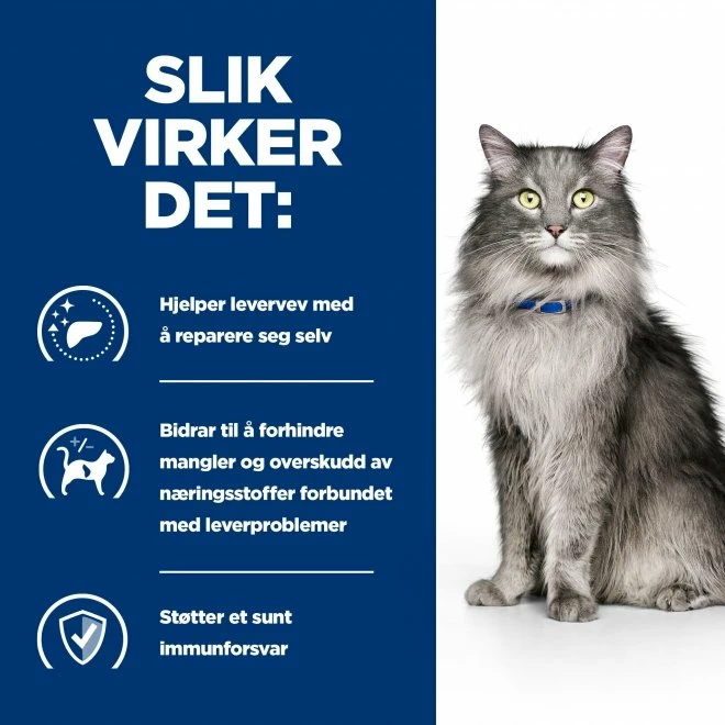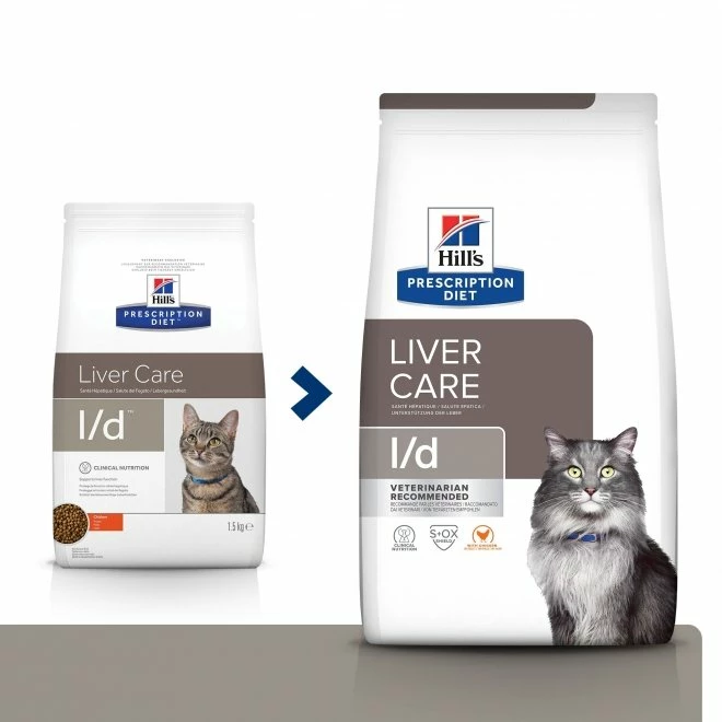 Prescription Diet Feline l/d inneholder mye lett fordøyelige proteiner, karbohydrater og fettstoffer. Veterinærfôret bidrar også til å begrense produksjonen av slamprodukter fra næringsstoffene, minske belastningen på leveren og nøytralisere frie radikaler, fordi det inneholder høye nivåer av antioksidanter.