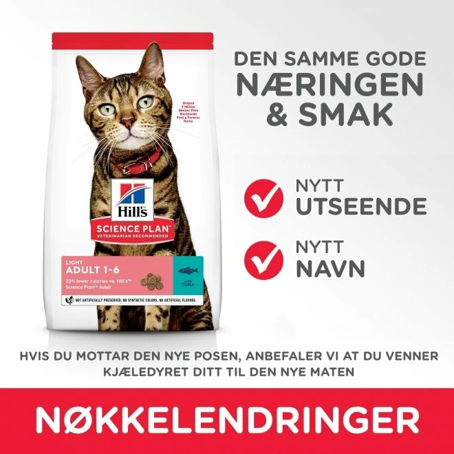 Dette fôret for voksne katter inneholder 24 % færre kalorier og 60 % mindre fett, for bedre vektregulering. Fôret har høyt fiberinnhold og gir økt metthetsfølelse mellom måltidene. Det er egnet for daglig fôring.