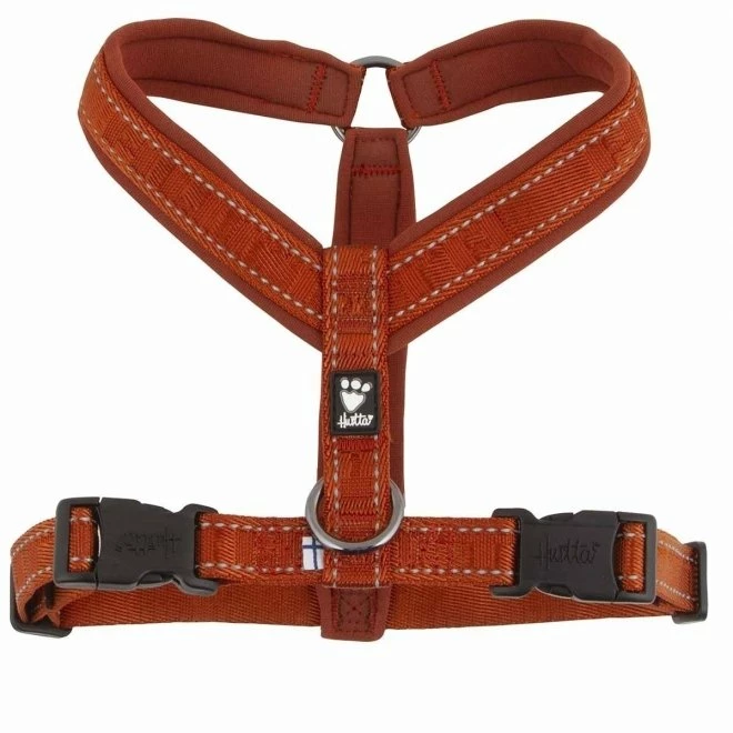 Hurtta Casual Y-selen har en myk neoprenpolstring som gjør selen ekstra behagelig for hunden å ha på seg, og den er utstyrt med reflekser som øker synligheten i mørket.