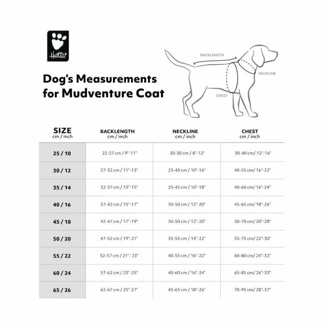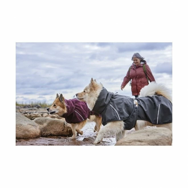 Hurtta Mudventure ECO Regnjakke Svart er tilgjengelig i flere størrelser for både små og store hunder.