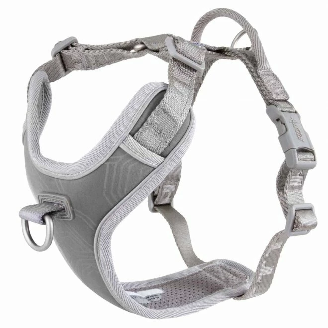 Hurtta Venture No-Pull Hundesele kan justeres både rundt halsen og rundt brystet, noe som gjør det enkelt å tilpasse seg hundens kroppsform. Selen er utstyrt med to hurtigspenner på brystet – dette gjør at du enkelt kan ta av og på selen uten å løfte hundens forbein.