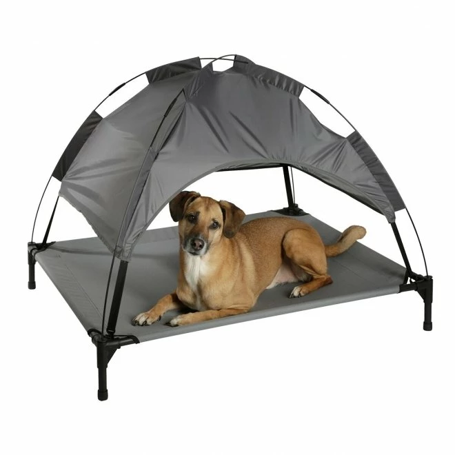 Kommer med hevet liggedel. Sengen står plassert på fire ben for å holde plassen sval og luftig, og for ikke å komme i kontakt med den kalde bakken når man bruker sengen under kaldere værforhold. Sengen har også et tak som kan festes på sengen de dagene hunden trenger ekstra beskyttelse mot solstrålene!