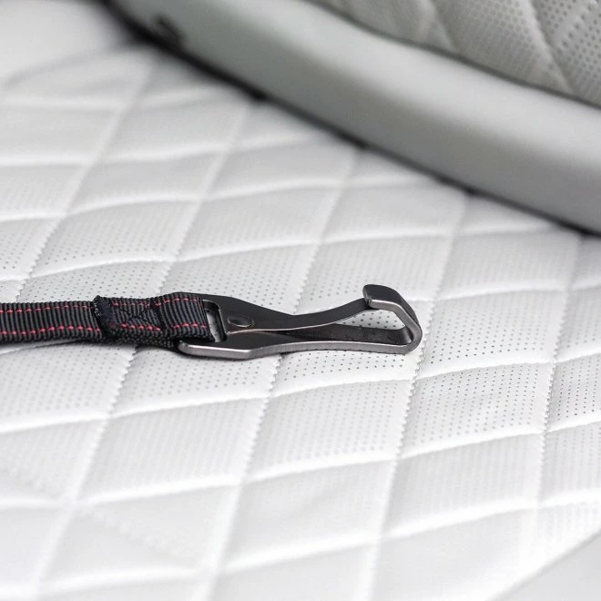 KONG Ultimate er et sikkerhetsbelte for sikring av hunder i bilen. Den ene enden festes i setet og den andre i hundens sele. Beltet gir trygghet og komfort under bilturer.