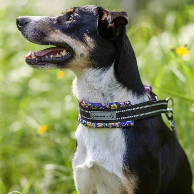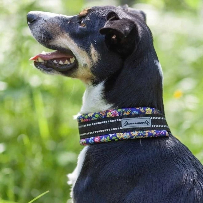 Kusse&Kutta Hundehalsbånd Lycra Bred Modell Blomster – Bredt halvstruphalsbånd for hunder