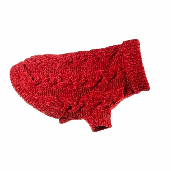 Little&Bigger Kabelstrikket Hundegenser Rød