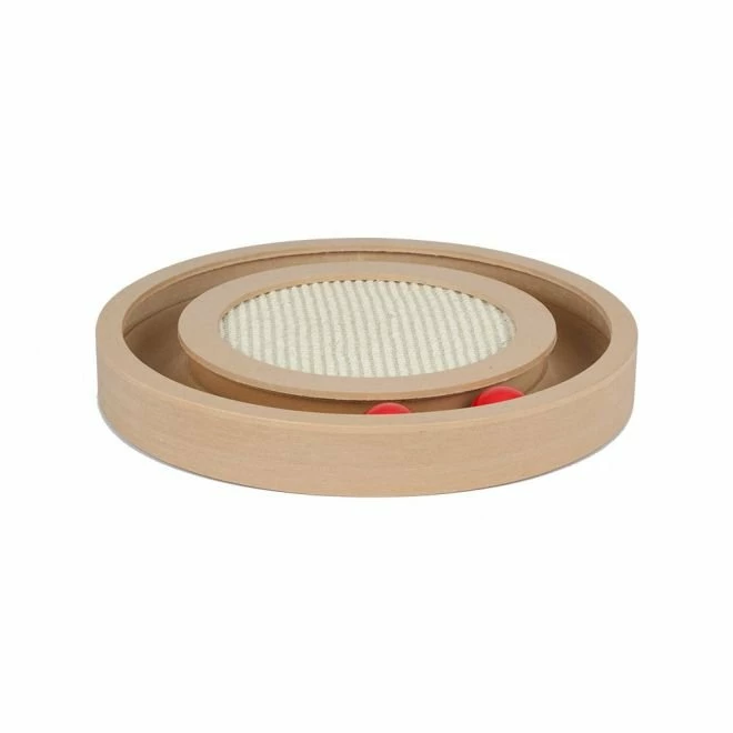 Roll-a-Ball Circle Game er en utfordrende aktivering leketøy for katten din. Det kommer til å jakte små baller med bjeller, som om de er små mus. Ballene kan fylles med godbiter eller tørr mat for å være ekstra attraktiv. Leketøyet er laget av tre og fungerer best hvis det plasseres på en glatt og sklisikker overflate. Gi katten din tid og litt hjelp til å komme i gang, så plutselig kan det bli veldig spennende.