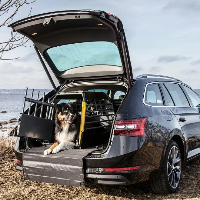 - Et krasjtestet hundebur for bilen for sikker og lovlig transport av hunder.
