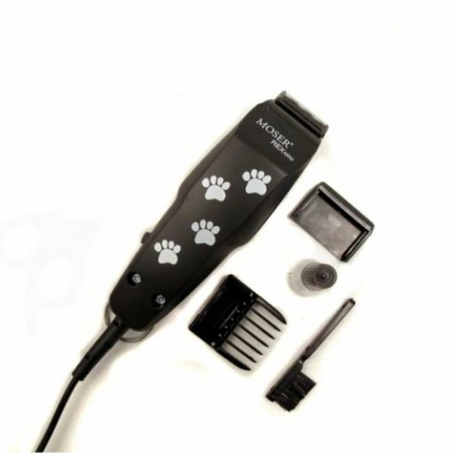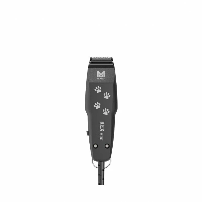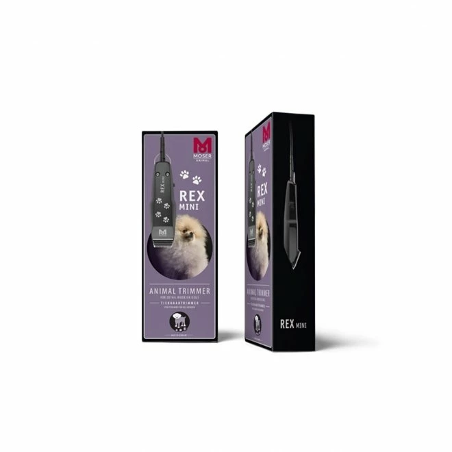 Moser Rex Mini Trimmer har en klippebredde på 32 mm og en klippelengde på 0,3 mm. Den drives av ledningen, som er 2 meter lang. Trimmeren er stille og er derfor egnet for å kutte lydfølsomme dyr. Takket være sin ryddige størrelse er det veldig enkelt å administrere.
