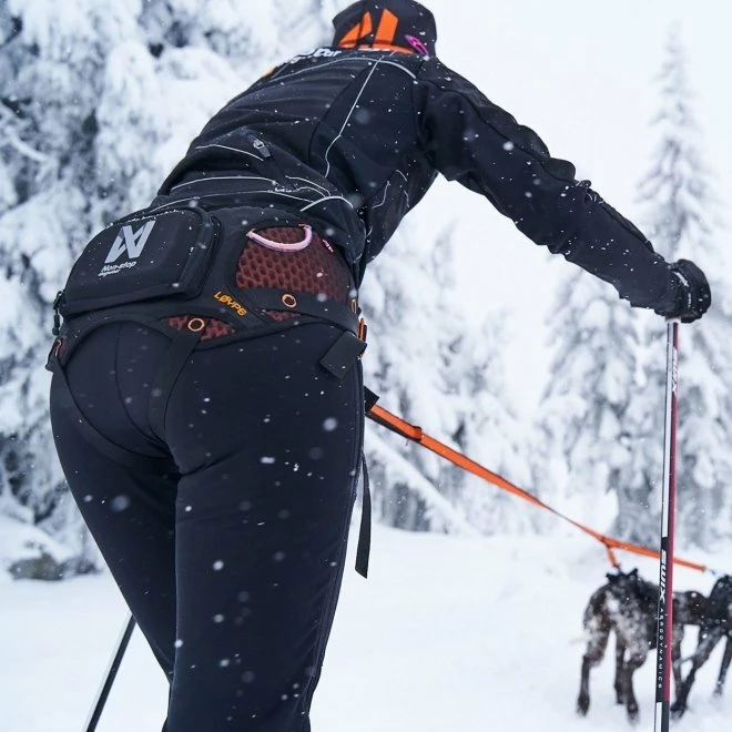 Takket være dette beltet har du hendene frie, samtidig som hunden kan løpe trygt og sikkert foran deg i løypa.