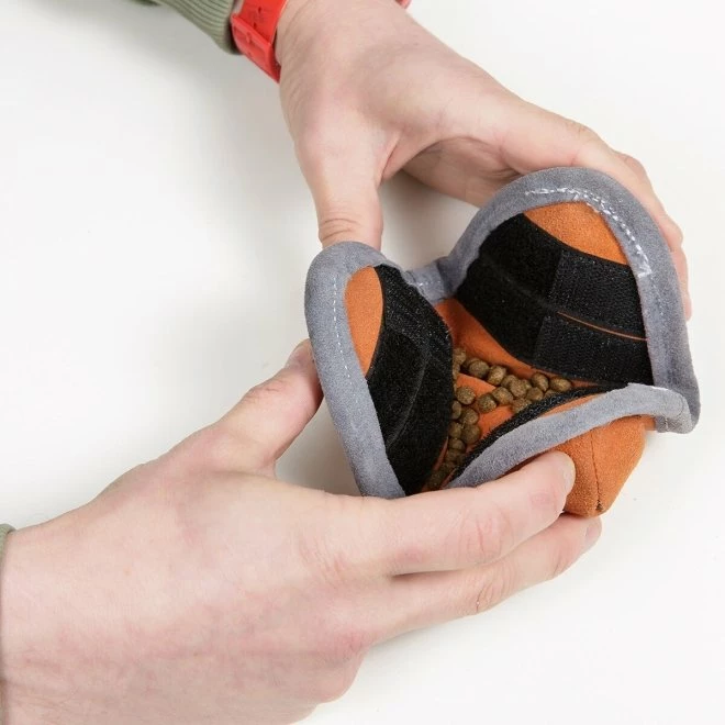 NufNuf Lotus Godteriskjuler er en klassisk leke der godteri eller tørrfôr skjules i midten av leken, som deretter brettes sammen slik at hunden skal forsøke å få den opp. Leken er laget i skinn og semsket skinn. Tilgjengelig i to størrelser.