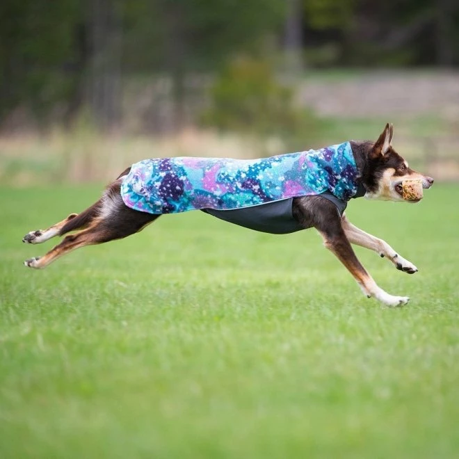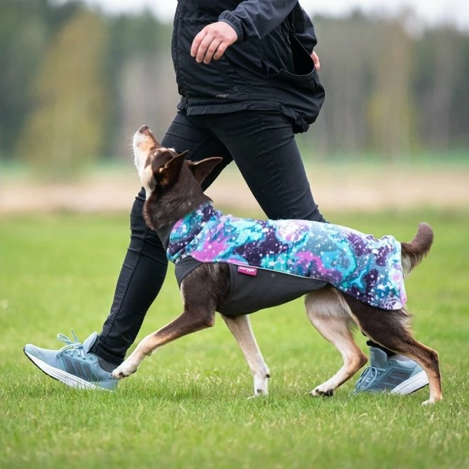 Denne hundegenseren er designet for å være enkel å bevege seg i, samtidig som den holder hunden din varm. Det komfortable og elastiske fleecedekkenet er perfekt som et mellomlag under for eksempel et regndekken.