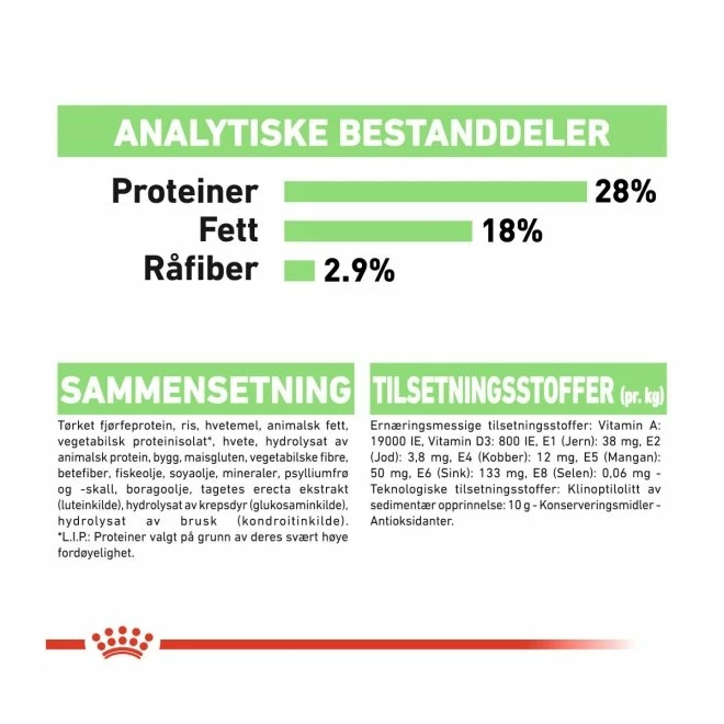 - Fôr for store voksne hunder mellom 26 og 45 kg med sensitiv fordøyelse