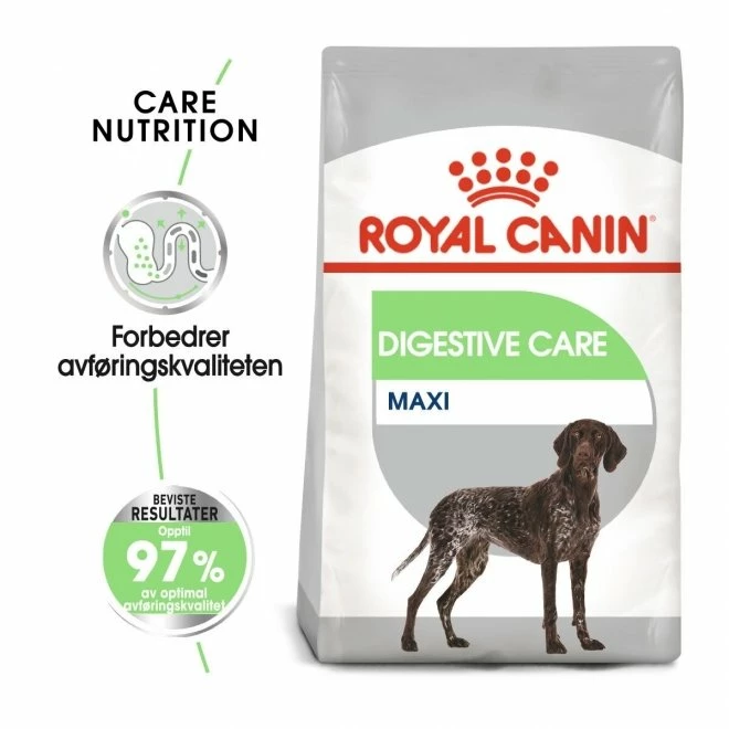 Forbedrer fordøyelsen, takket være at ris er den eneste stivelseskilden, og har et tilskudd av omega-fettsyrer som bidrar til et velfungerende mage- og tarmsystem. Fibre hjelper med å regulere passasjen gjennom tarmen. Fôret er beriket med sink, mens A-vitamin og biotin bygger opp hudens forsvar mot ytre belastninger og gjør at den gror bedre. Royal Canin Maxi Sensible bidrar til å styrke cellene og bremse aldringseffektene, takket være høye E-vitamin og C-vitamin, selen og et redusert fosforinnhold.