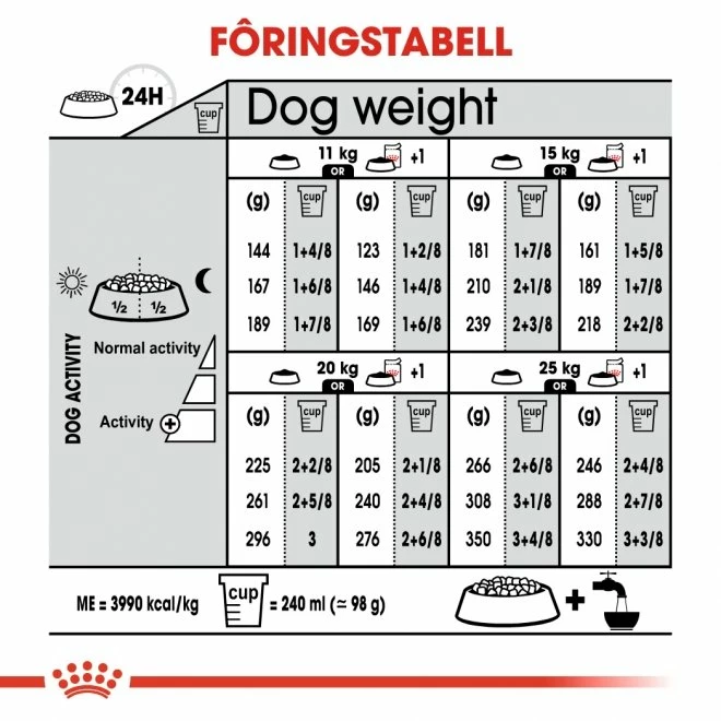 - Fôr for mellomstore voksne hunder mellom 11 og 25 kg som er aktive eller har en sensitiv fordøyelse