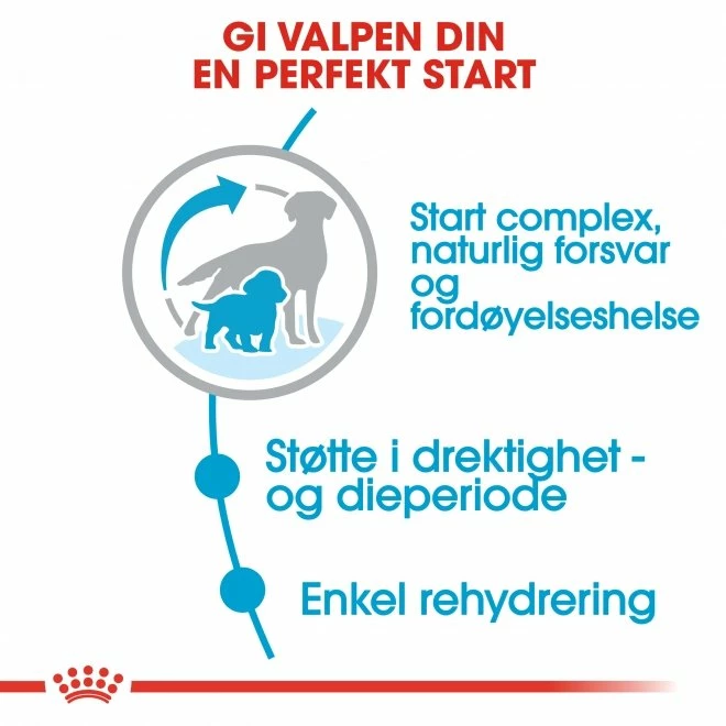 Royal Canin Medium Starter er utviklet etter et unikt næringsprogram som oppfyller tispens og valpenes behov. Fôret tilgodeser tispens høye energibehov på slutten av svangerskapet og under avvenning. Dessuten er fôret næringsrikt og gjør overgangen fra amming til fast føde enklere (energiinnhold, proteinkvalitet, fettsyrer osv.). Fôret er et resultat av pågående vitenskapelig forskning fra Royal Canin. Det er en eksklusiv kombinasjon av de samme ingrediensene som finnes i tispens melk, i tilegg til spesifikke næringsstoffer som aktivt bidrar til å fremme god fordøyelse og styrke valpens naturlige immunforsvar.