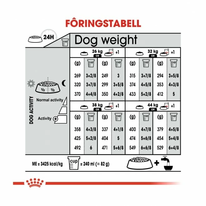| Hundens aktivitetsnivå | Lavt / Normal |