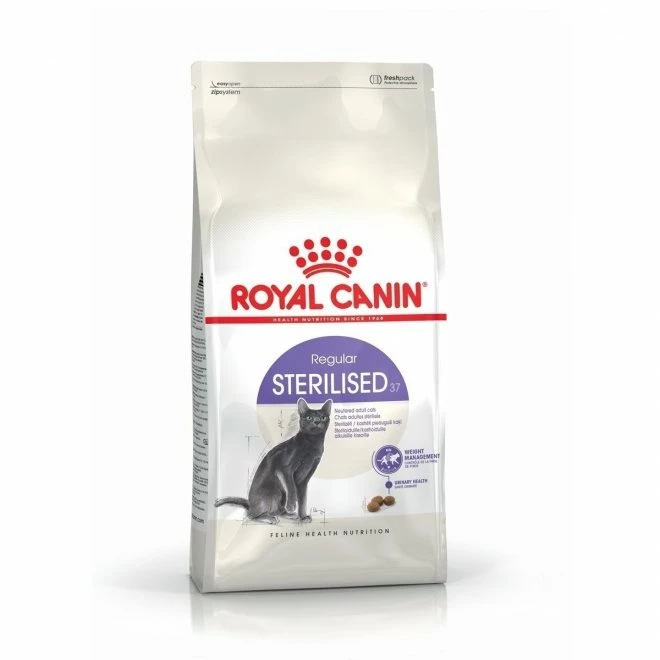 Royal Canin Sterilised 37 er et fôr for steriliserte 1–7 år gamle katter. Etter kastreringen reduseres kattens energibehov. Fôret bidrar til å begrense risikoen for overvekt takket være et moderat fettinnhold (12 %). Beriket med L-karnitin.
