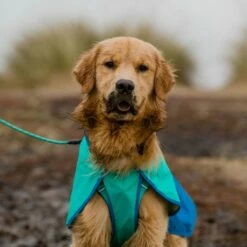 Ruffwear Sun Shower Regnjakke Lyseblå er en lett jakke for hunder som er vannavstøtende!