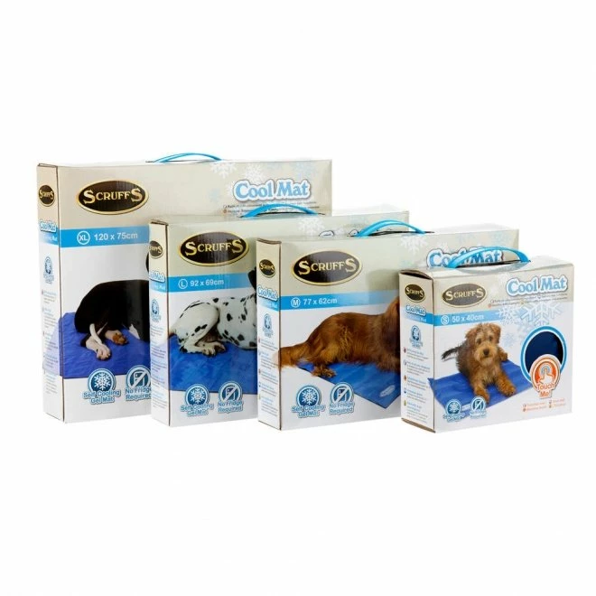 Scruffs Kjølematte er fylt med selvavkjølende gele som avkjøler hunden når den ligger på den, uten at du må gjøre noe. Den avkjølende effekten varer i cirka en time, avhengig av hvor varmt det er i omgivelsene. Etterpå lar du matten ligge ubrukt i ca. en time for å gi geleen ny effekt!