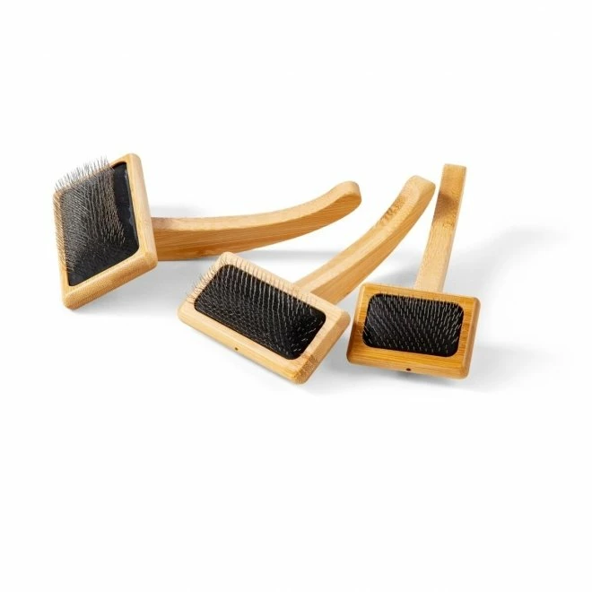 Denne karden med bambusskaft har korte pigger som er tilpasset dyr med kort til middels lang pels. Perfekt til å fjerne løs pels og gre ut floker, men også til å gjøre pelsen myk og blank.