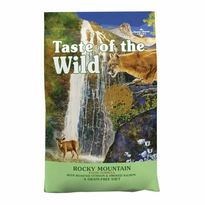 Et fôr med viltsmak. Taste of the wild Rocky Mountain inneholder 42 % råproteiner og 18 % fett.