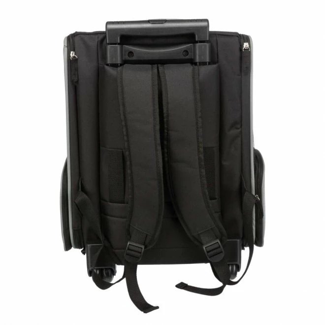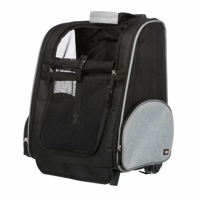 Elegant transportveske/ryggsekk er utformet i slitesterk nylon for beste holdbarhet. Videre har den to åpninger, to sidelommer, en avtakbar pute for enkel rengjøring, et innsatt kort halsbånd så hunden/katten ikke kan hoppe ut av vesken og reflekser for økt sikkerhet. Skulderstroppene er anatomisk utformede. For dyr opptil 8 kg. Vesken veier ca. 2,1 kg.