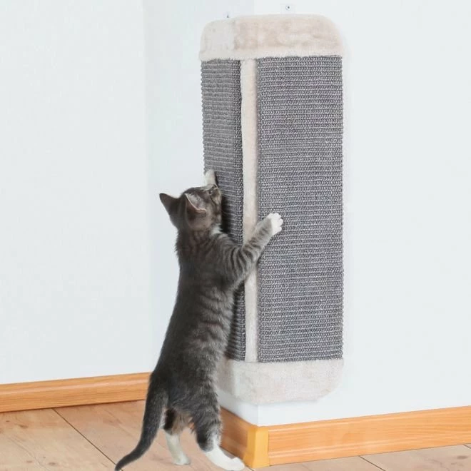 Trixie Klorebrett til Hjørner er perfekt for katten å kvasse sine klør på. Baksiden er dekket i herlig plysj og sisalplaten er 14 x 46cm. Et klorebrett gir katten mulighet til å få utløp for å klore og man kan skåne gardiner og møbler. Mål 32 x 60cm.