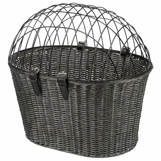 En nyutviklet og forbedret sykkelkurv som festes på styret. I kurven er det en grå pute med plysjtrekk av polyester som kan vaskes for hånd, dette er inkludert! Gittertaket er godt festet med stropper og kan enkelt fjernes. Passer til dyr opptil 5 kg. Mål: 44 × h34 × 41 cm.