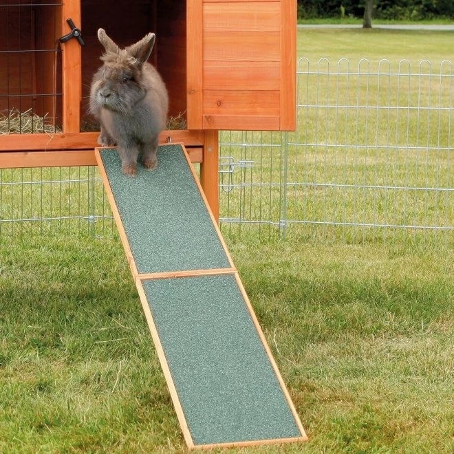 Rampen gjør det mulig for kaninen eller marsvinet ditt å ta seg enkelt inn og ut av kaninburet og ut i hagen. Det er lurt å gi kaninen muligheten til å gå inn og ut av buret og hagen etter eget ønske. Med en rampe blir dette mulig.